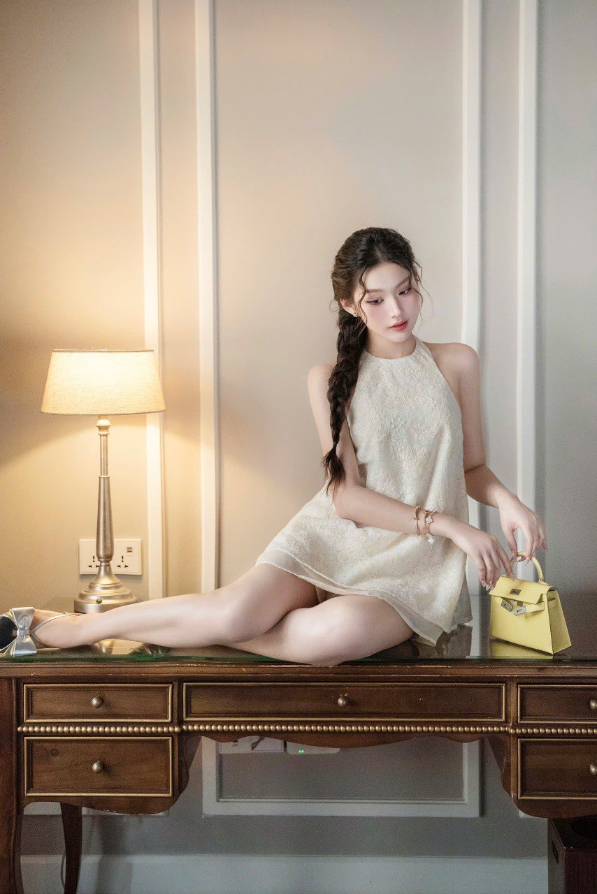 A halter lace mini dress with a flowy A-line silhouette, featuring a delicate double-layer hem for a graceful, feminine look. Perfect for dates, events, and everyday elegance.